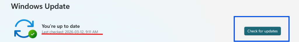 Even if your system says it’s up to date, take a quick look at when the last update was installed. If it’s been more than a week or two, it’s a good idea to run it again. For example, this screenshot says that we are up to date, but the date last update took place was almost a month ago (day this post has been published is April 10, 2026)